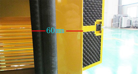 靜音箱箱體的內壁,采用波峰式吸音棉全面敷設,不留死角,確保全方位,大范圍吸收音波,吸音棉與箱體鋼板的厚度合約60mm。我們知道,聲波的擴散是呈曲線形的,靜音箱體內部的吸音棉,完全根據聲波的擴散形式設計,通過一個個的泡孔緩解聲音,阻隔傳遞,波峰式吸音棉表面的面積是平面面積的4倍以上,大大加強了吸音的強度,有效全面阻擋吸收聲音。吸音阻音效果高。